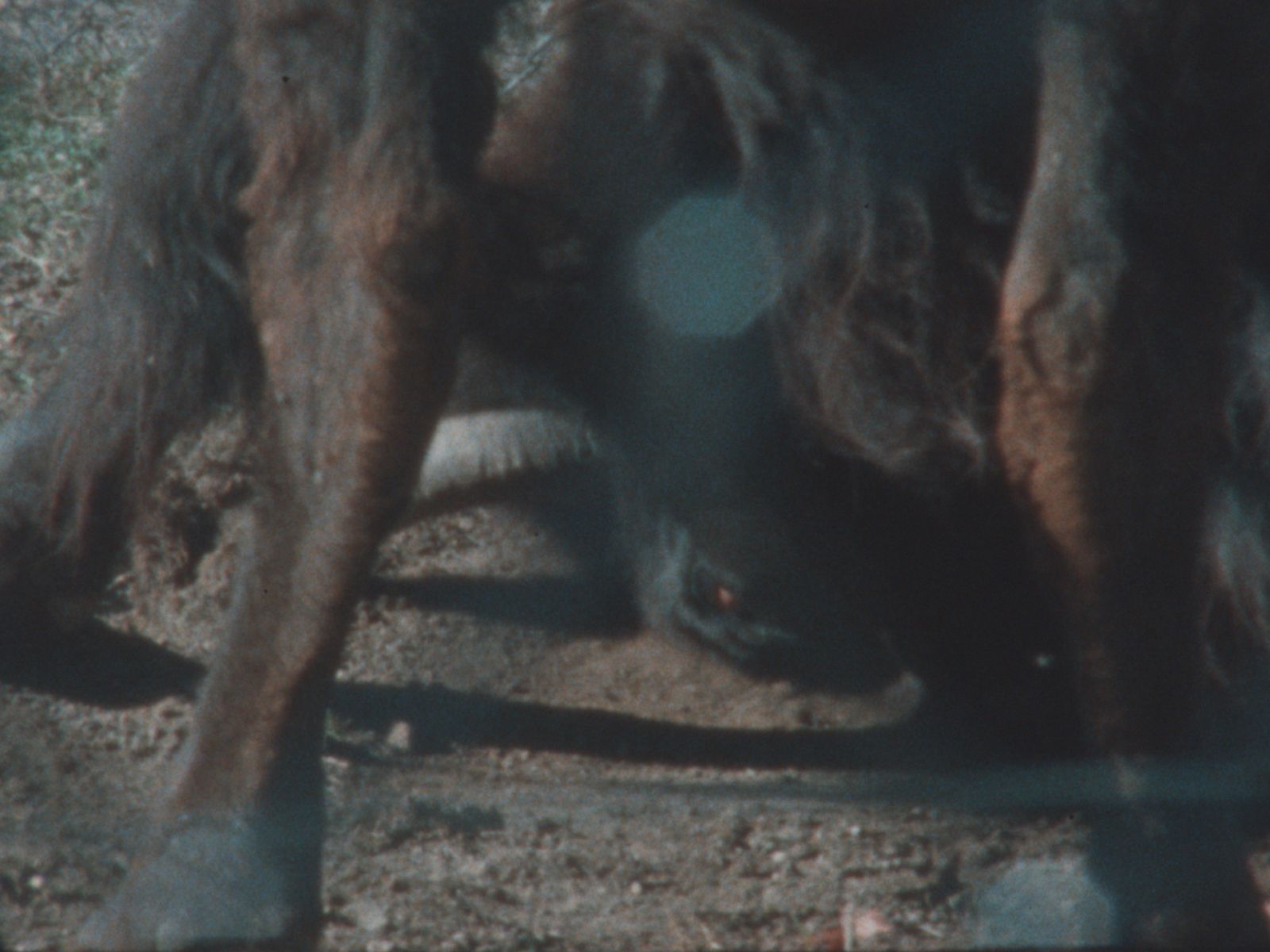 This film is comprised of recordings from several different animal sanctuaries and zoos in Minnesota, using a way of looking that sustains several kinds of coexistence. The film presents learning how to count in different languages, and as we read, we see many beasts, brutes, animals, monsters, creatures, critters, beings, and becomings. The 8mm film exists in a static balance, and occasionally the light and shadow approach that of Pointillist painting. The lens does not guide viewers toward any specific viewing method, but rather it preserves the possibility of seeing everything as light and seeing the film in a new light through the act of being seen. In this experimental space, the film focuses on learning words that are related to the multiplicity of individuals and injecting cherished values into those relationships. Echoing this exhibition’s exploration of the form and meaning of dialogue, the open, illuminated environment, created by the two screens that are suspended between the glass exterior walls of MACA, resonates with the site.