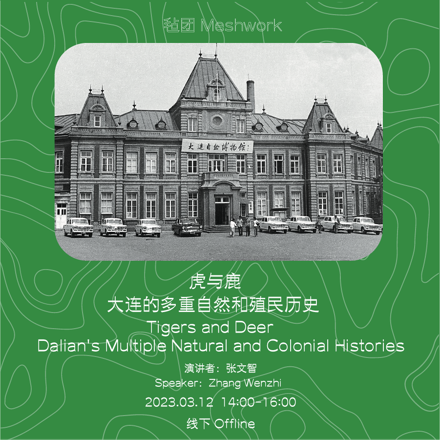 In the urban area of Dalian, Baiyun Mountain and Lianhua Mountain are two connected mountains, with the sea on the other side. There are about 150 wild sika deer living on this mountain range. In recent years, every time I return to Dalian, I take time to track these deer scattered throughout the mountains. The reasons why these deer appear on the mountains in the urban area of Dalian are varied. Once, while observing this group of deer in the mountains, I saw a male deer walking towards a stone monument with the inscription of the Lüshun Fortress landmark established by the former Japanese Kwantung Army. He raised his head, and at that moment, an image appeared in my mind: his proud antlers turned into rough wood in the forest, the heat inside his body seemed to store warm coal, and his fur was like black earth covered with residual snow. At this moment, this group of deer seemed to connect the history and nature of the city. We can follow their wandering route, along the mountain path from the mountain range to the seaside, and see a stone monument called "Kwantung Governor's Office." The history of colonization and the history of nature are closely intertwined, and tigers and deer record the continuous transformation between architecture, landforms, and culture.