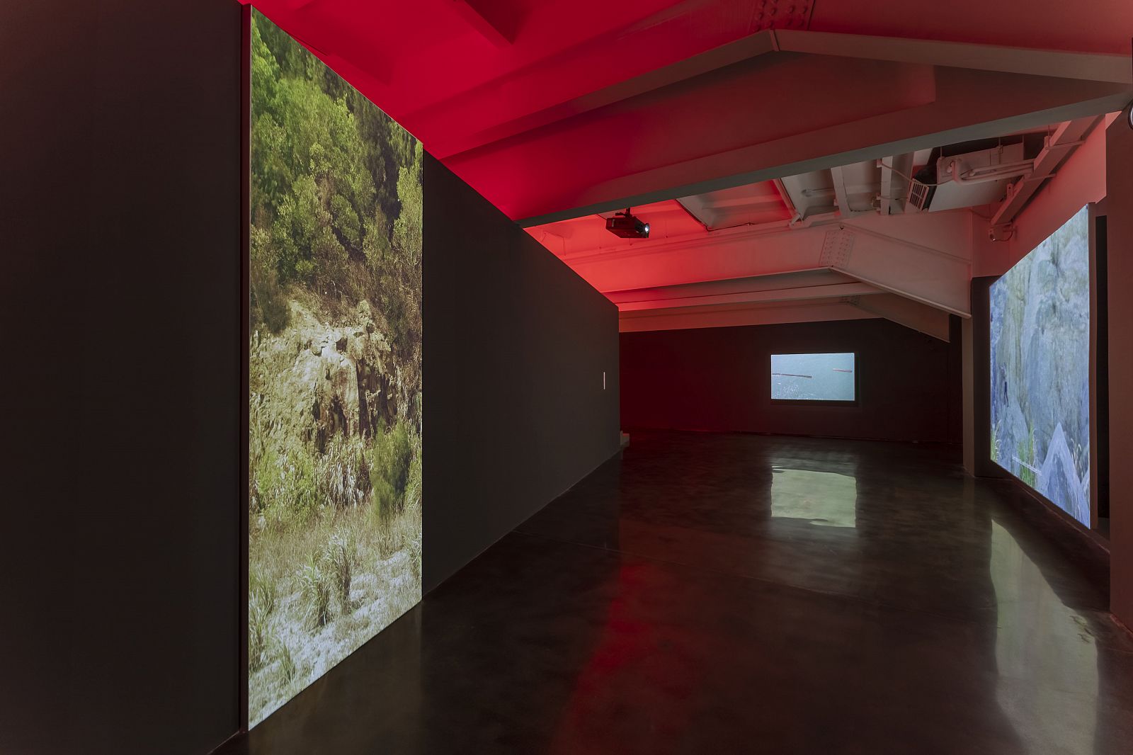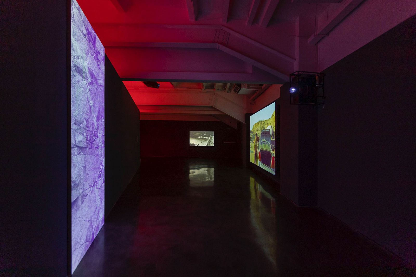 Hu Wei, The Rumbling, three channel HD video installation, color, sound, super 16mm film to 2K digital image, 2K digital image, supported by MACA. Photo: Yang Hao.