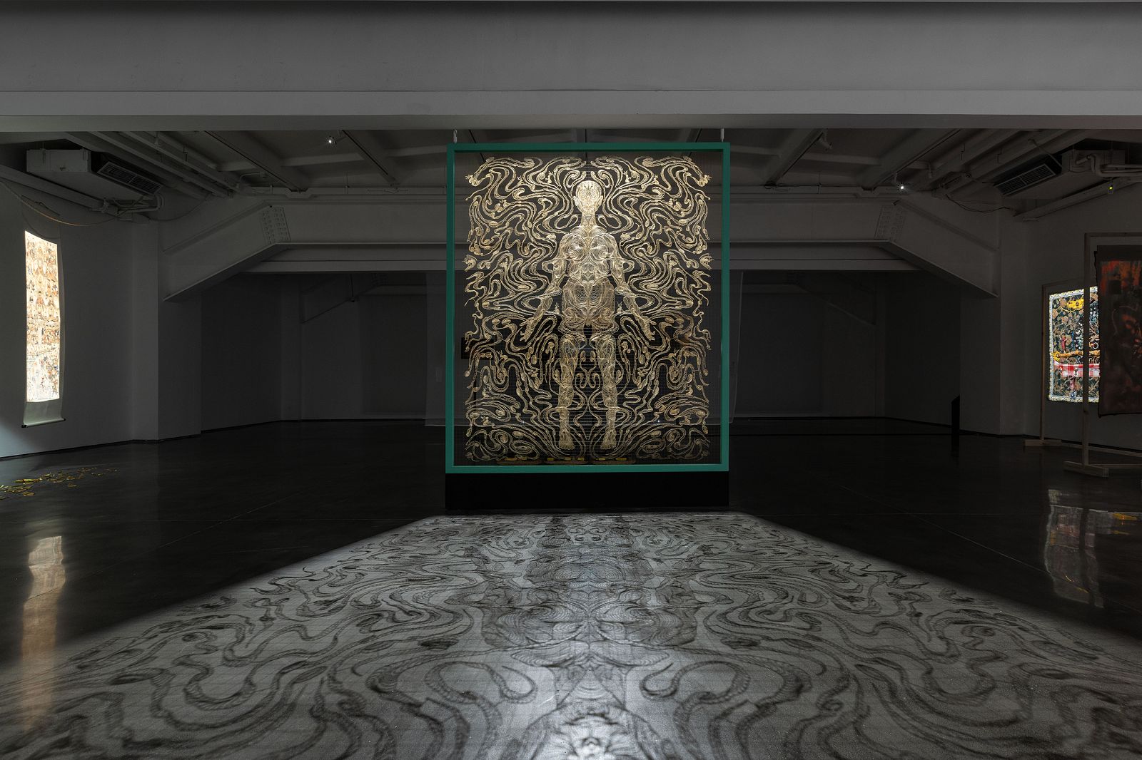Wu Jian'an, Vital Essence #1, 2019-2021, hand-engraved cowhide, metal frame, 210×245×6cm. Folk in Order, installation view, MACA, 2024. Photo: Yang Hao