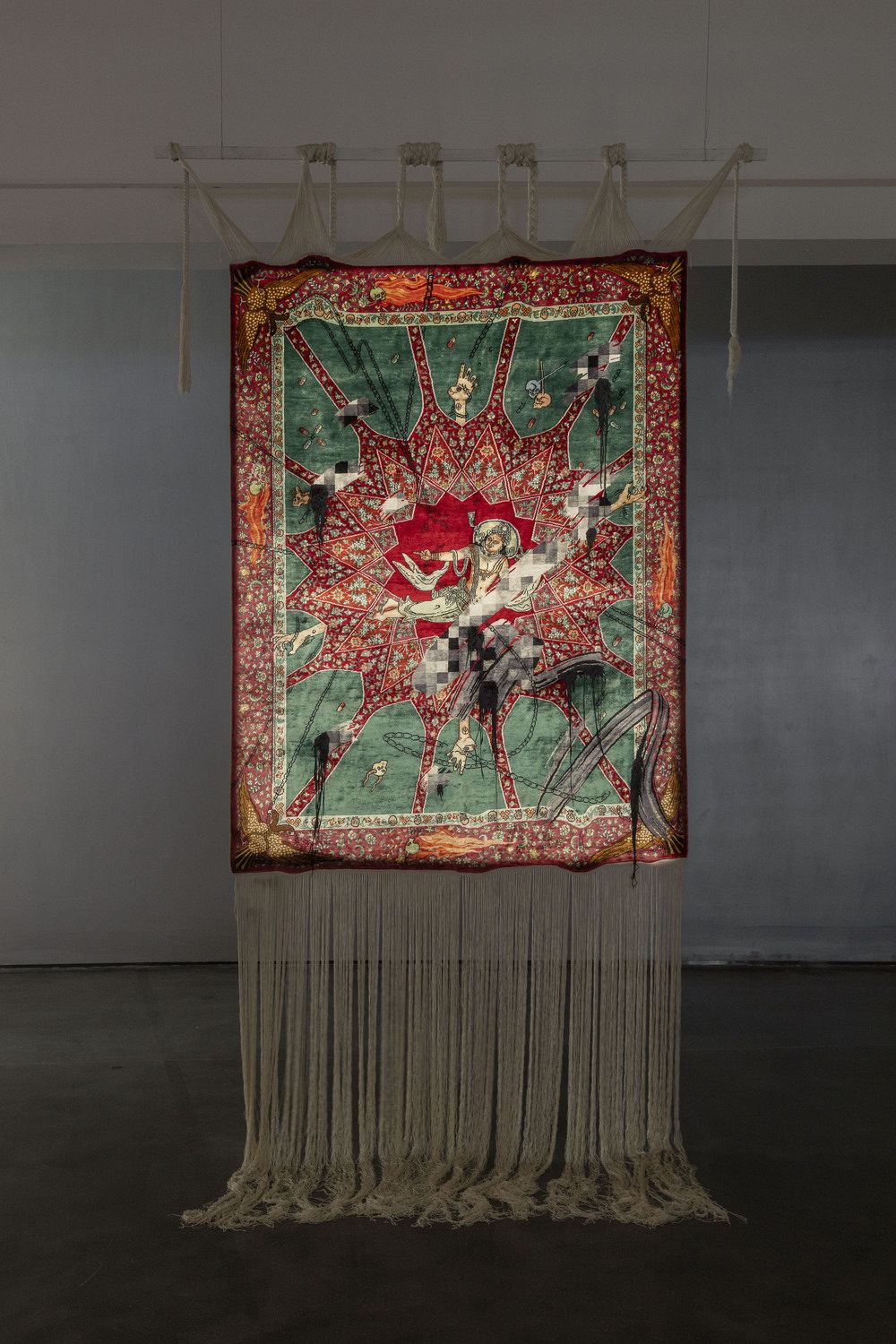 Zhou Shaojiang, Untitled Weaving No.1, 2017-2019, silk, 135×183×3.6 cm. Folk in Order, installation view, MACA, 2024. Photo: Yang Hao