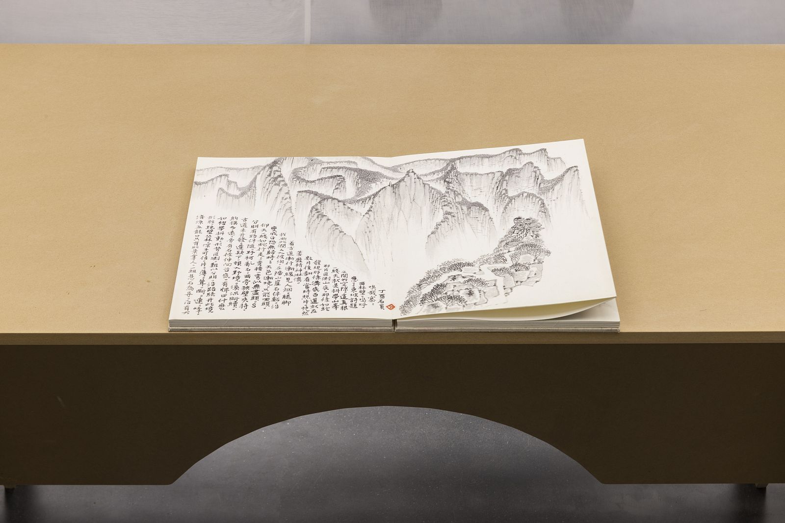 Liang Shuo, A Travel to The Mountains in Henan, 2017, high-resolution reproduction print, an album of twenty-four leaves, 33×25(×24)×3cm. Folk in Order, installation view, MACA, 2024. Photo: Yang Hao