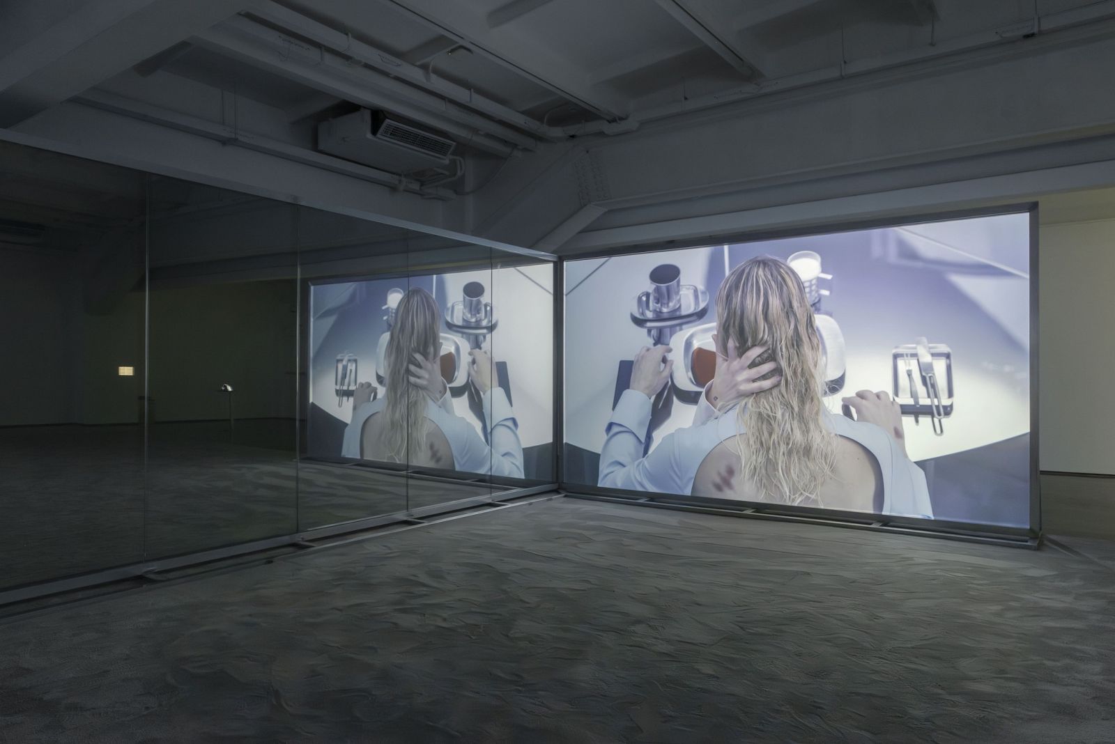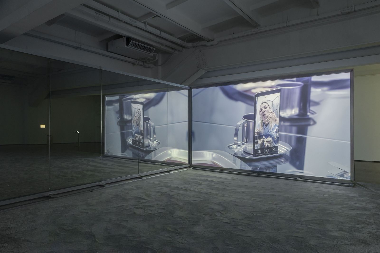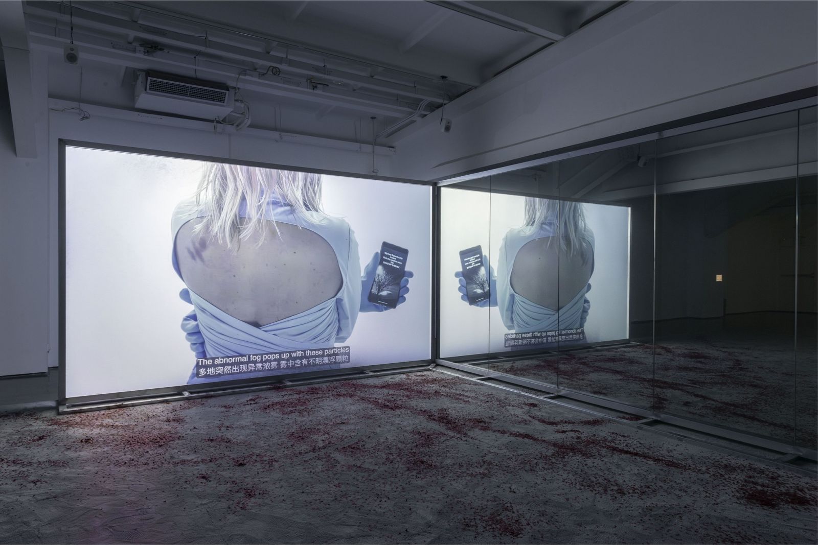 Spit and Image marks the first solo exhibition in China by the artist duo Dorota Gawęda and Eglė Kulbokaitė. This debut brings together their most significant work and their newest pieces. The title, while originally signifying "perfect likeness," is here expanded to suggest a nuanced doubleness—one that creates polyphonic and polyporous dimensions within a seemingly repetitive and mirrored structure. The space in MACA is transformed into an ambiguous zone of liminality, in which perceptual boundaries dissolve into a site of superimposition, entanglement, and chaos. Self and doppelgänger, body and technology, real and virtual, scent and mist, membrane and screen: as various materialities and temporalities permeate and traverse this realm, a speculative contemporary hauntology emerges.