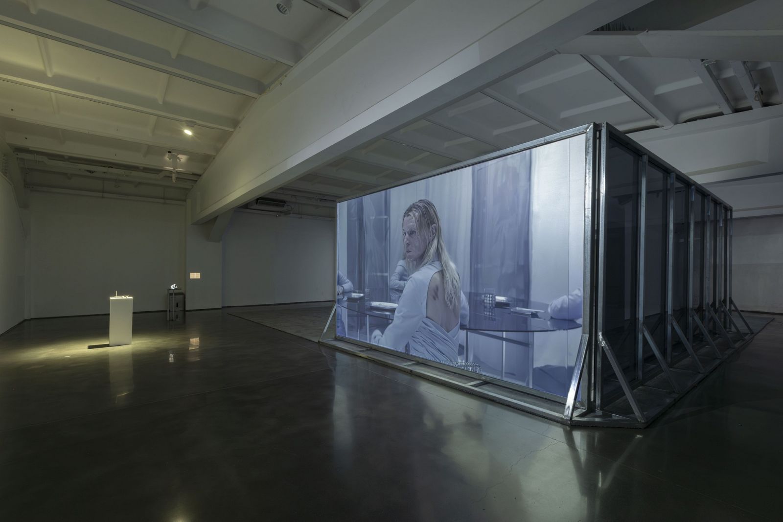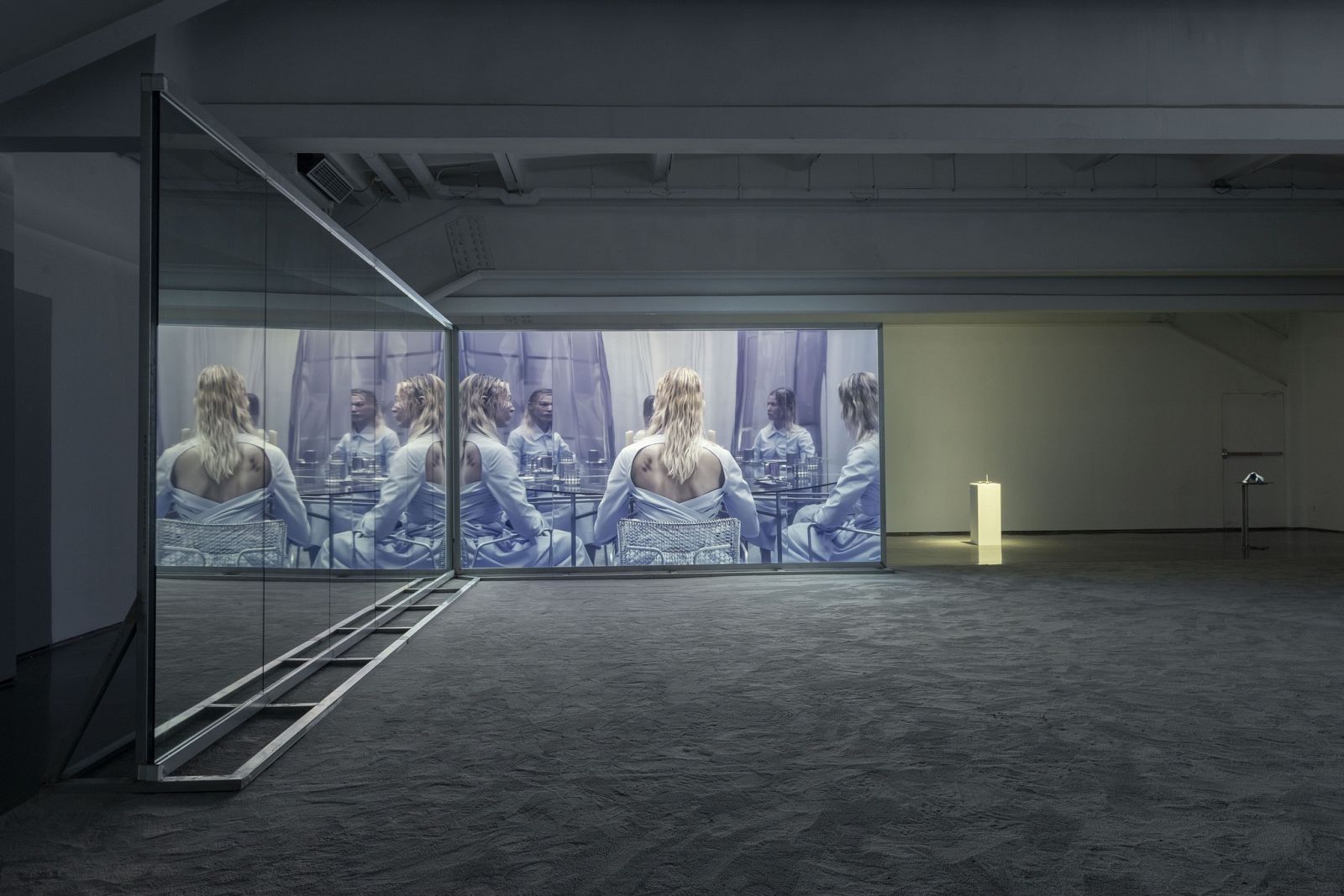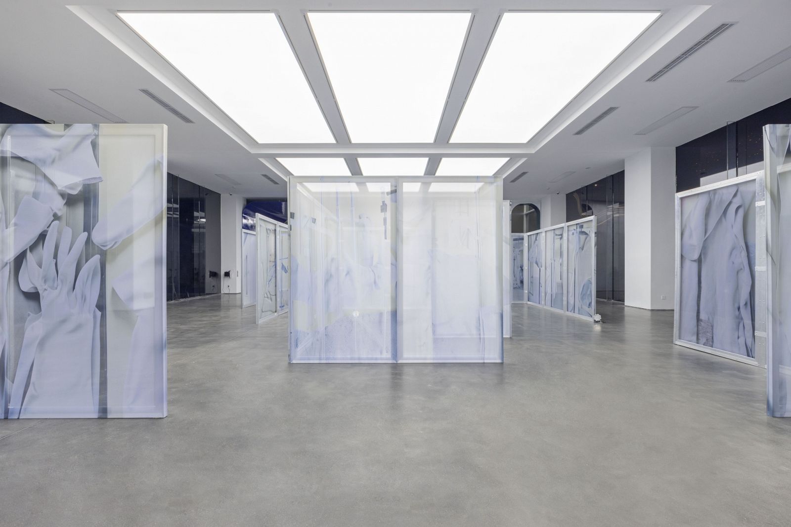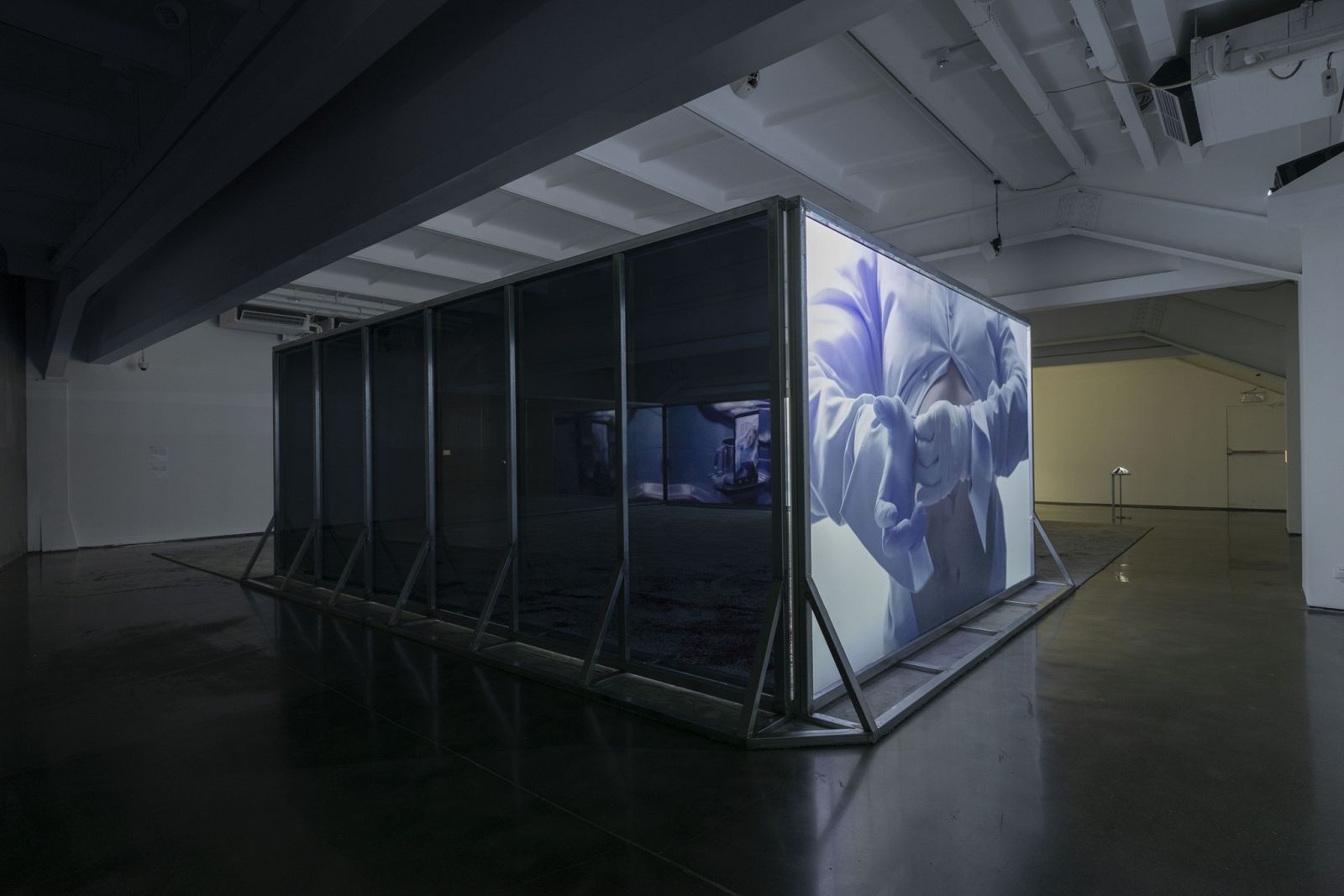 Spit and Image marks the first solo exhibition in China by the artist duo Dorota Gawęda and Eglė Kulbokaitė. This debut brings together their most significant work and their newest pieces. The title, while originally signifying "perfect likeness," is here expanded to suggest a nuanced doubleness—one that creates polyphonic and polyporous dimensions within a seemingly repetitive and mirrored structure. The space in MACA is transformed into an ambiguous zone of liminality, in which perceptual boundaries dissolve into a site of superimposition, entanglement, and chaos. Self and doppelgänger, body and technology, real and virtual, scent and mist, membrane and screen: as various materialities and temporalities permeate and traverse this realm, a speculative contemporary hauntology emerges.