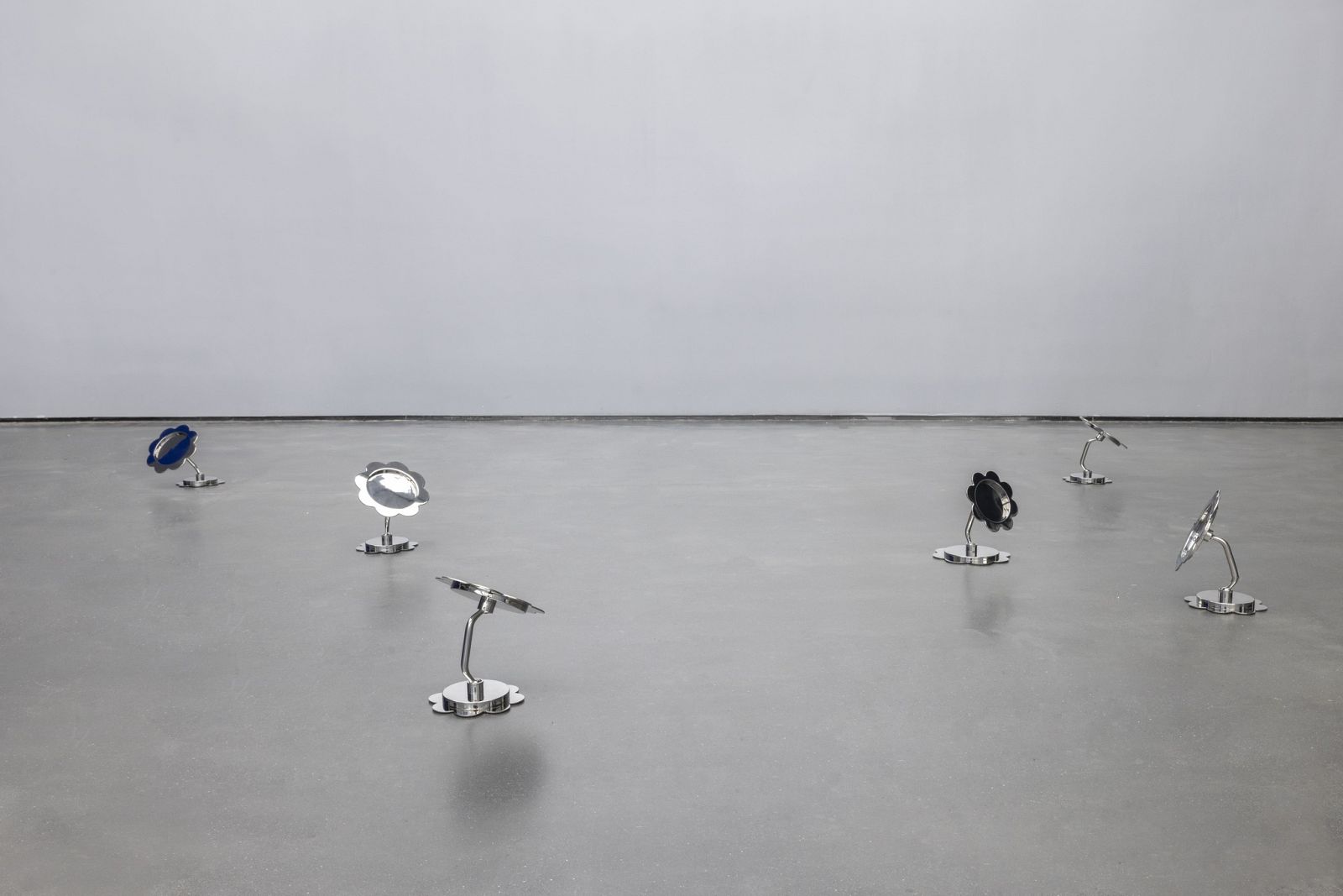 In this sense, Spit and Image manifests a complex state of in-betweenness. On the first floor, Enclosure (The Double Dream of Spring) (I-XXVIII) (2025) takes the Enclosure Movement as a historical reference, where veiled organza overlaps digital prints to construct boundaries at once present and precarious, evoking a metaphorical resonance between land privatization histories and the process of provatization in digital spaces. As the viewers step into a field of phantasmal "membranes," their very being diffuses into the "filters" constructed by technical images. Meanwhile, in Yield (twinning) (2025), the viewers confront their own sharp reflections in stainless steel flower mirrors. Disturbingly, these nostalgic objects, which are derived from a plastic make-up mirror once-ubiquitous in Eastern Europe, now function as surveillance cameras that rigidly scrutinize viewers who dare to come near—as if the flowers were performing a paradoxical dynamic of gazing and being gazed at, or offering sensorial testimony to the historical rupture between Nature and Culture and Self and Environment.
