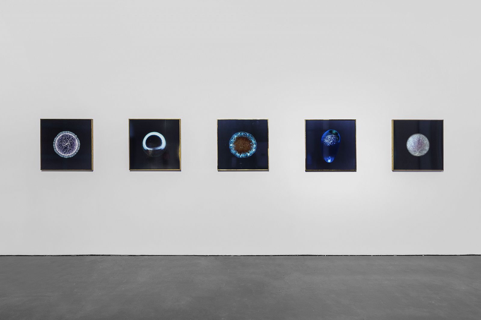 Sarah Schönfeld, All You Can Feel, 2013, Medication, photographic film negative, C-type print, 70 x 70 cm, 5 in total. TECHNO WORLDS, installation view, MACA, 2025. Photo: Yang Hao