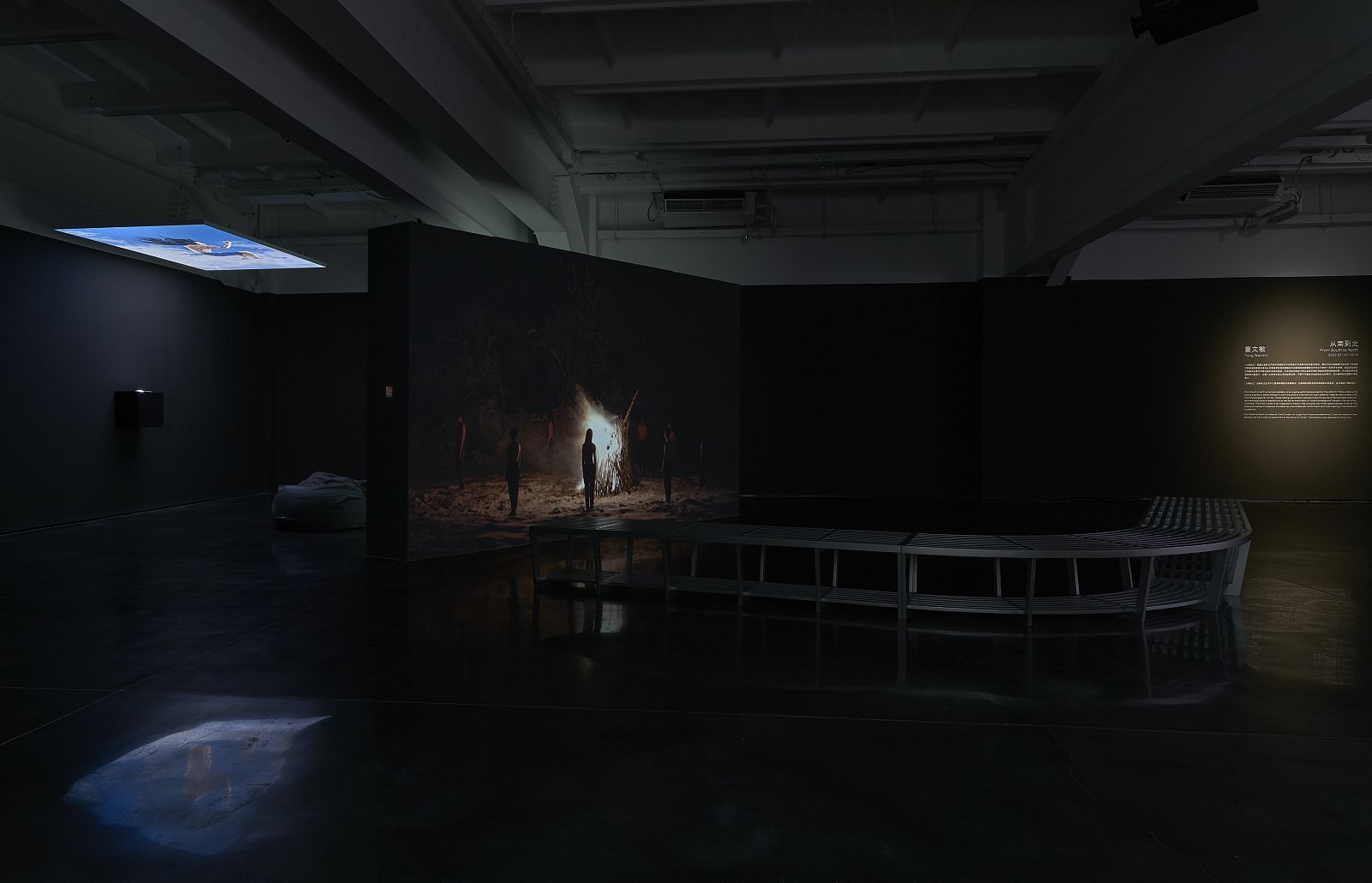 童文敏,《天黑以后》,单频影像(彩色,有声),9分48秒,2022。童文敏“从南到北”展览现场,MACA,2022。摄影:孙诗