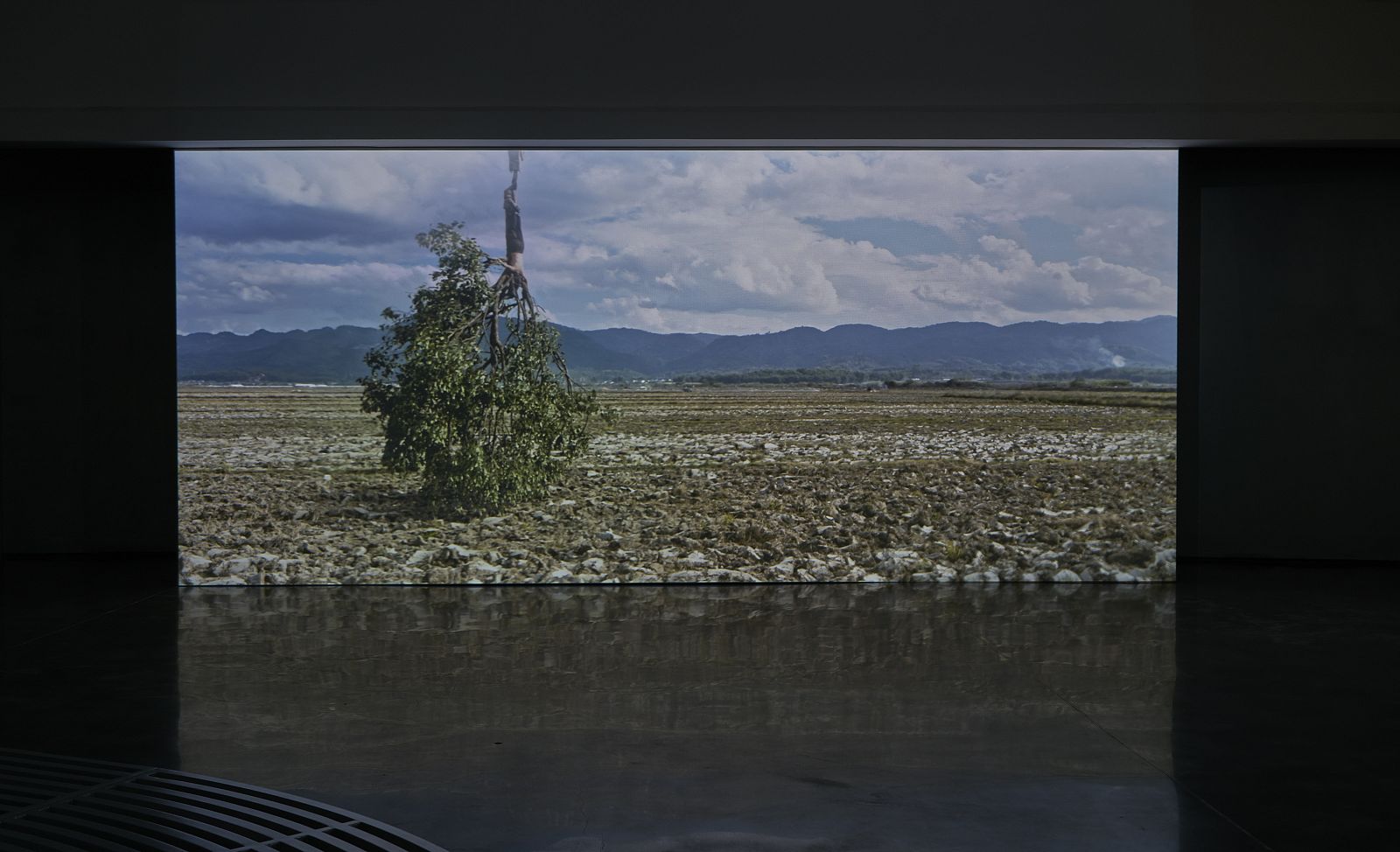 童文敏,《绞杀》,单频影像(彩色,无声),14分39秒,2022。童文敏“从南到北”展览现场,MACA,2022。摄影:孙诗